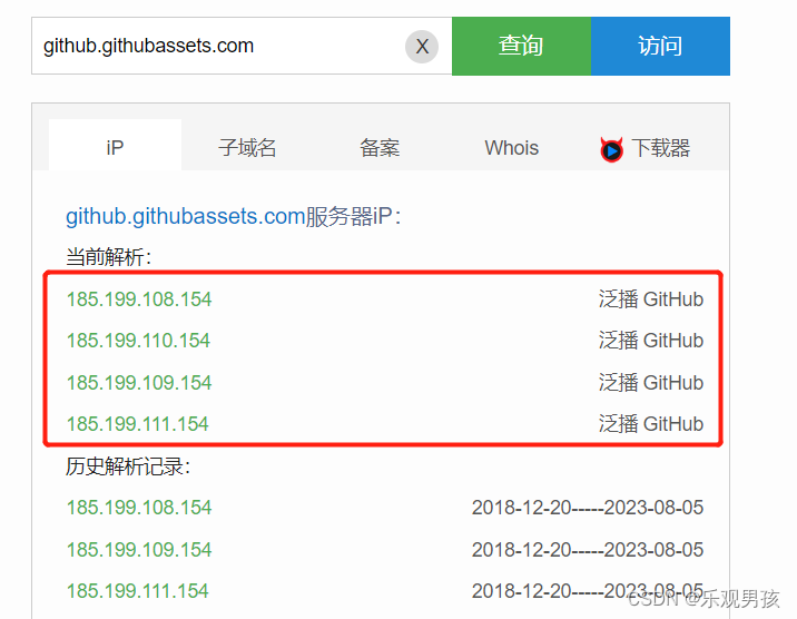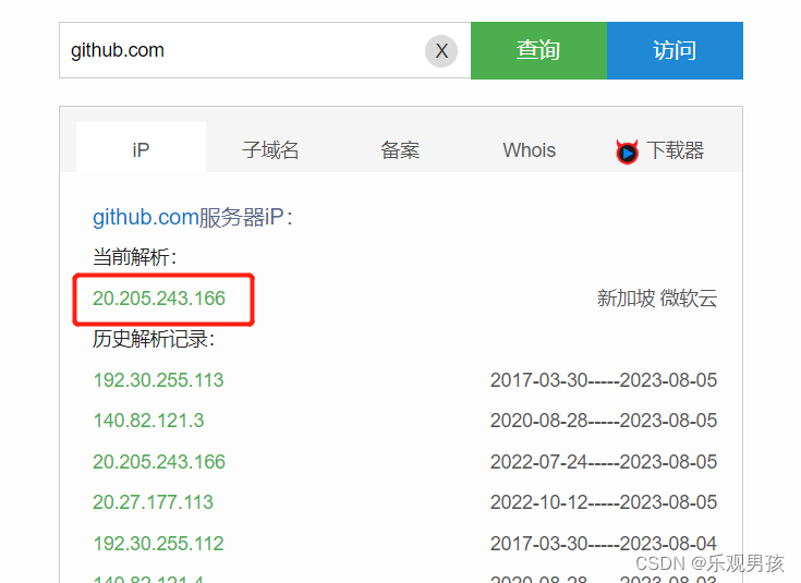 如果是通過在線工具,同樣可以找到域名對應的ip: