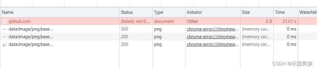從瀏覽器的網絡請求查看,顯示耗費了21秒就失敗了
