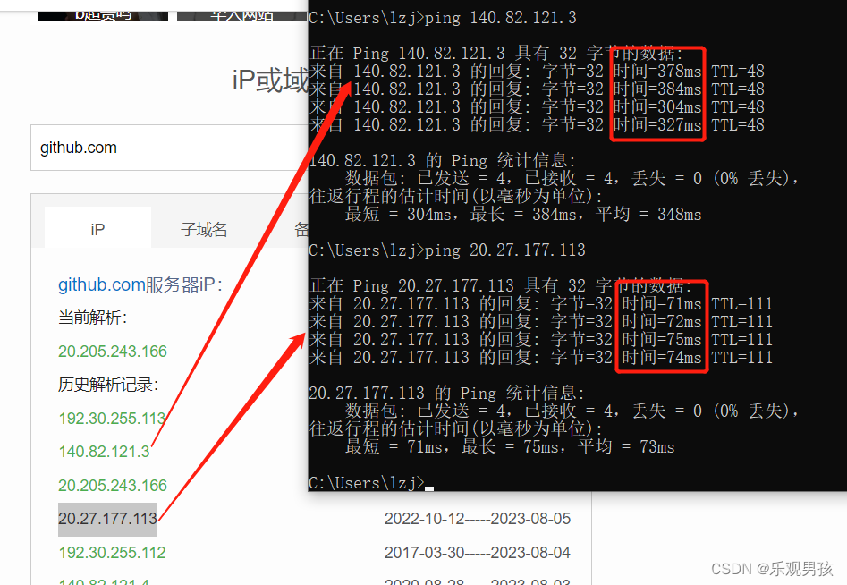 2、查找一個github服務器ip,而且訪問這個ip要比較快。